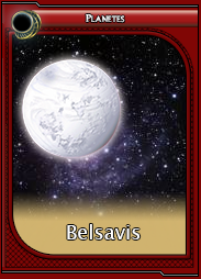 Située près du secteur Senex, Belsavis est une planète à la géographie très peu ordinaire. En effet, son sol est constitué de profondes vallées issues d'anciens volcans maintenant éteints et d'immenses glaciers qui recouvrent presque la totalité de la planète. Vu de l'espace, elle ne se différencie pas plus d'une autre planète glaciale telle Hoth. Mais si on y regarde de plus près, dans les vallées les plus encaissées, creusées loin dans la croûte terrestre, l'air, glacial en hauteur, devient doux et humide. Il n'est donc plus surprenant de voir des formes de vie se développer dans ces viviers de chaleur et d'humidité.